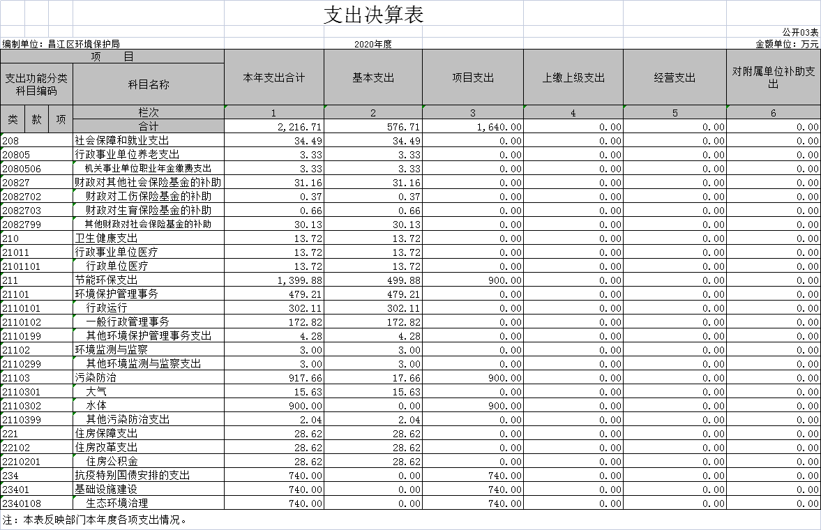 昌江生态环境局部门2020年度部门决算