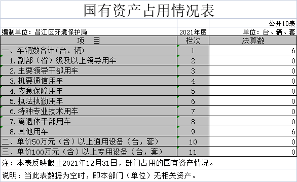 截至2021年12月31日,本部门共有车辆0辆,其中,副部(省)级及以上领导用车0辆、主要领导干部用车0辆、机要通信用车0辆、应急保障用车0辆、执法执勤用车0辆、特种专业技术用车0辆、其他用车6辆;单位价值50万元以上通用设备0台(套);单位价值100万元以上专用设备0台(套)。