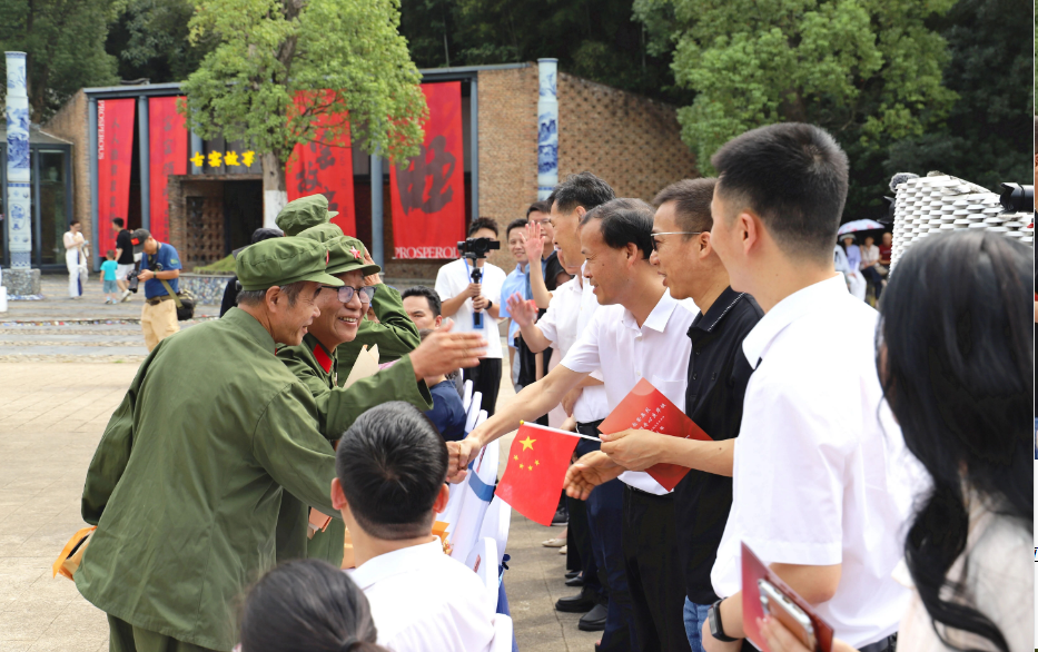 活动现场,少先队员代表向退伍老兵代表敬献鲜花,以此表达最诚挚的敬意与最热烈的欢迎。活动在《我和我的祖国》悠扬的旋律中拉开帷幕,红色经典歌曲与陶瓷主题轻音乐交织回荡。