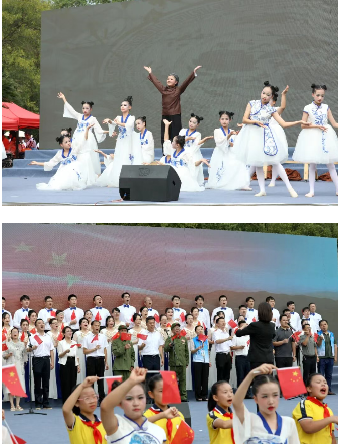 随后,混声合唱《强军战歌》气势磅礴,唱出了豪迈气概;非遗舞蹈《泥塑瓷薪》精彩上演,生动展现陶瓷文化的传承脉络。终场时,全体人员齐唱《歌唱祖国》,嘹亮的歌声响彻整个广场,不少游客自发加入合唱队伍,挥动着手中的小国旗,爱国热情在广场上激荡。