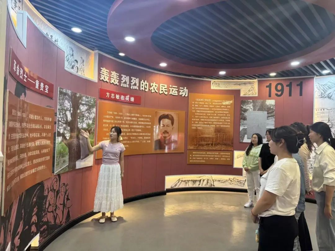 随后,青年们来到荷塘红色精神教育展馆。展馆内,一幅幅珍贵的历史照片、一段段感人至深的文字介绍,生动再现了荷塘乡在革命战争时期的峥嵘岁月。在讲解员的带领下,青年们仿佛穿越时空,回到了那个战火纷飞的年代,深刻体会到了革命先辈们为了理想信念,不畏牺牲、艰苦奋斗的伟大精神。在展馆内的宣誓墙前,全体青年高举右拳,重温入团誓词,铿锵有力的誓言在展馆内回荡,表达着他们传承红色基因、勇担时代使命的坚定决心。