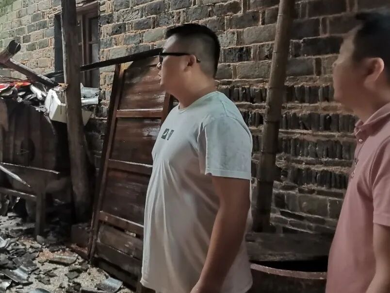 荷塘坞村小组胡绳文家里房屋倒塌,山门村主任徐光建第一时间带队赶到现场,拉起警戒线,并到其家里告知他注意安全。另一处危房,也拉起来了警戒线,告知周边村民注意安全,并打电话通知房主要及时处理。