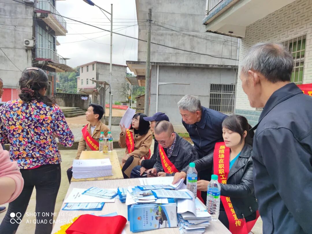 为更好地服务群众,惠及民生,4月13日,昌江区社保局同荷塘乡人保所工作人员下村开展垦殖场在职职工养老保险政策宣传活动,为荷塘垦殖场广大群众、退休职工等提供相关政策宣传咨询。