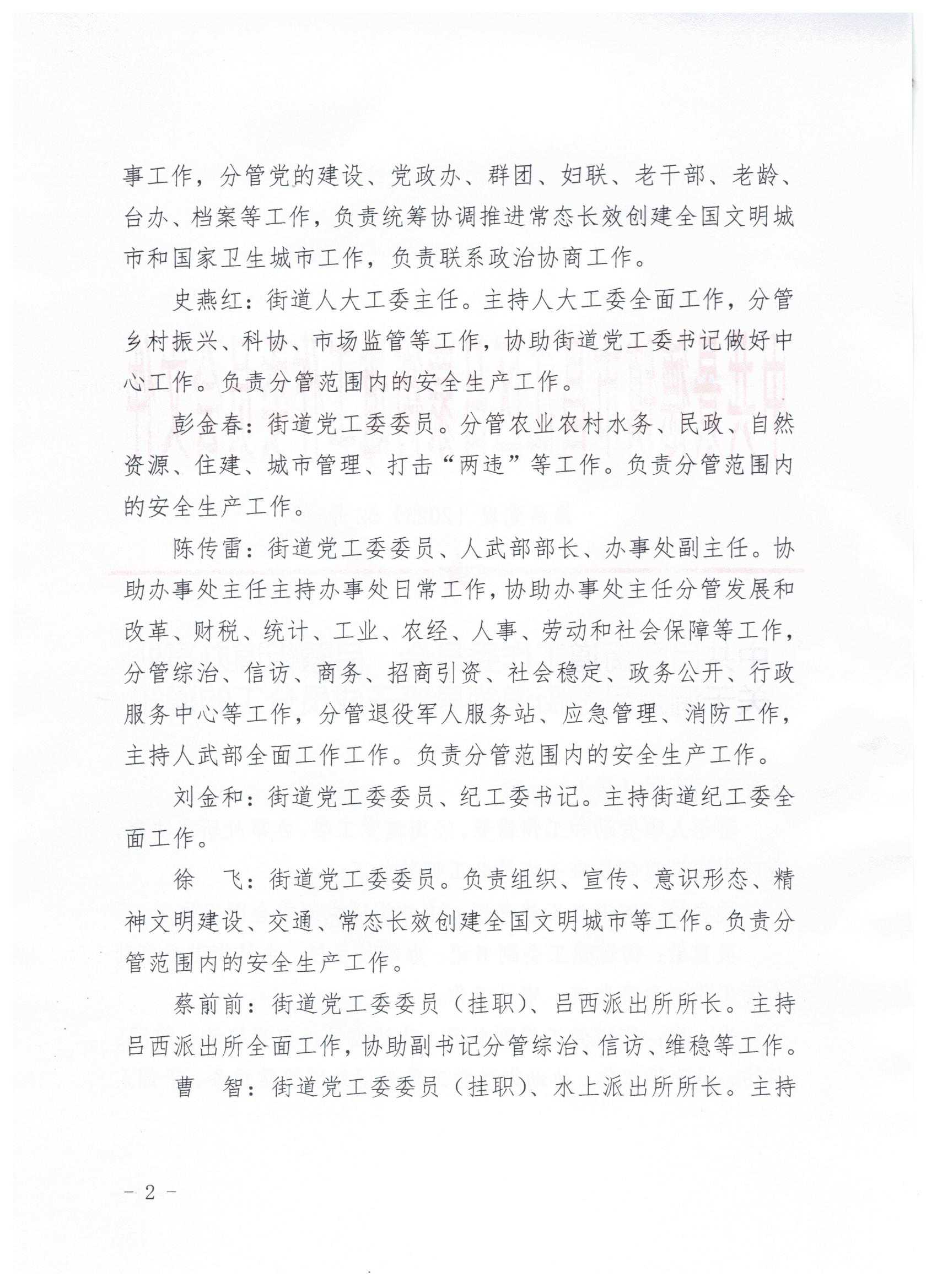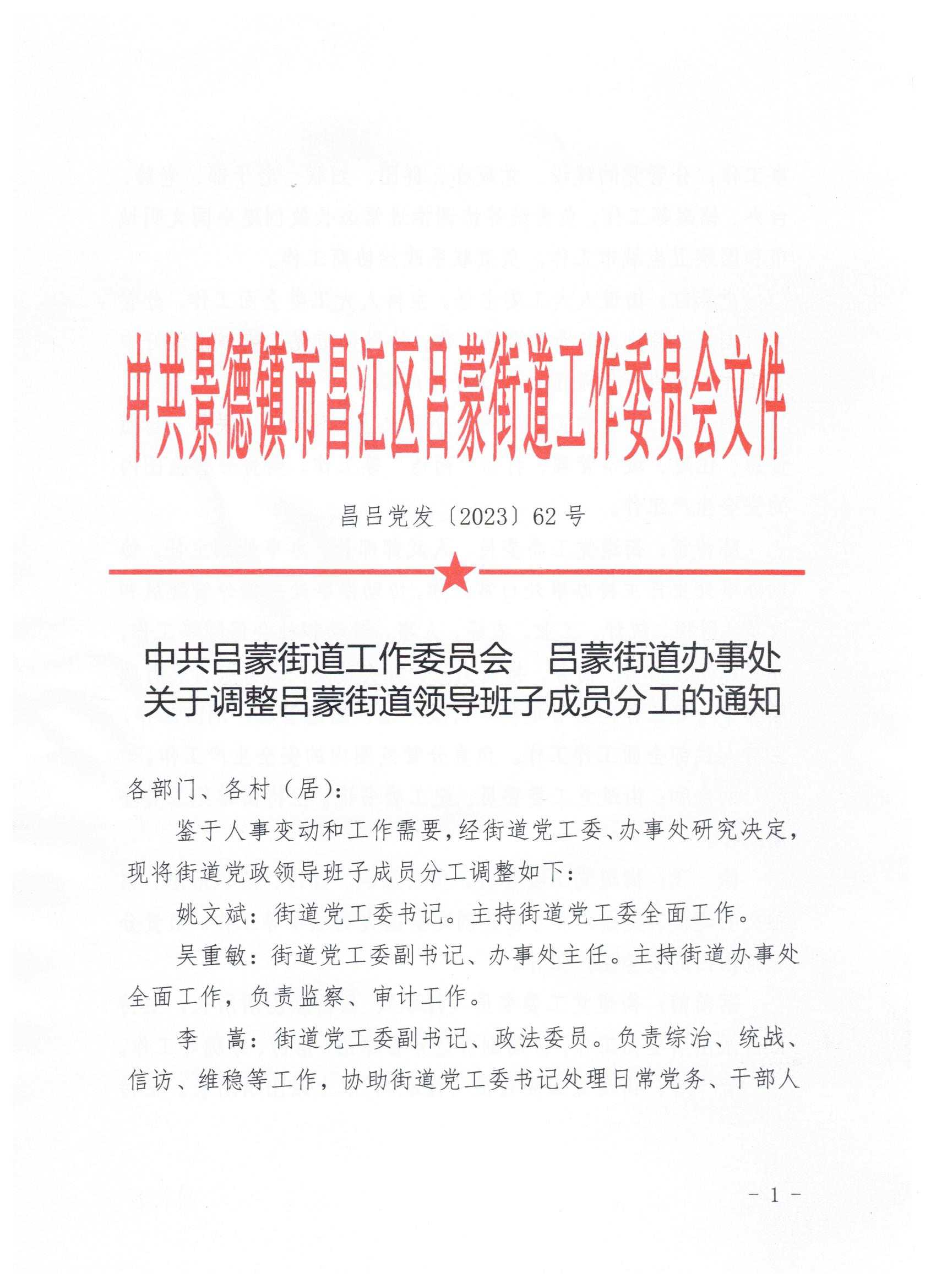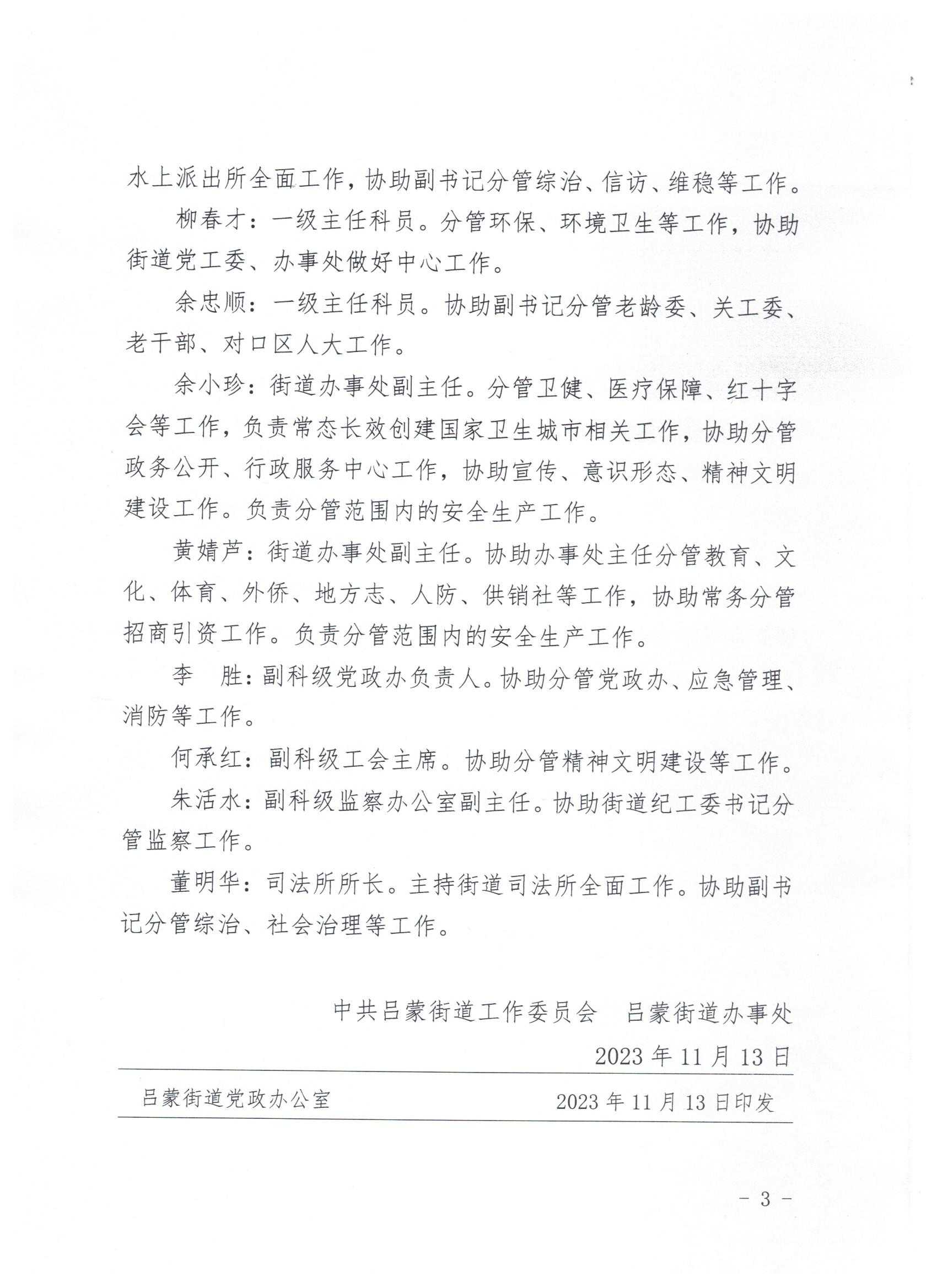 中共吕蒙街道工作委员会 吕蒙街道办事处 关于调整吕蒙街道领导班子成员分工的通知