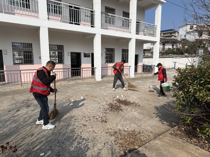 1月23日,在丽阳镇枫林村党群服务中心的院内,一场热火朝天的环境卫生整治行动正在进行。村“两委”成员、党员志愿者们手持扫帚、簸箕等工具,分工协作,对党群服务中心的院内广场、楼道走廊、绿化带等区域进行了全方位清理。