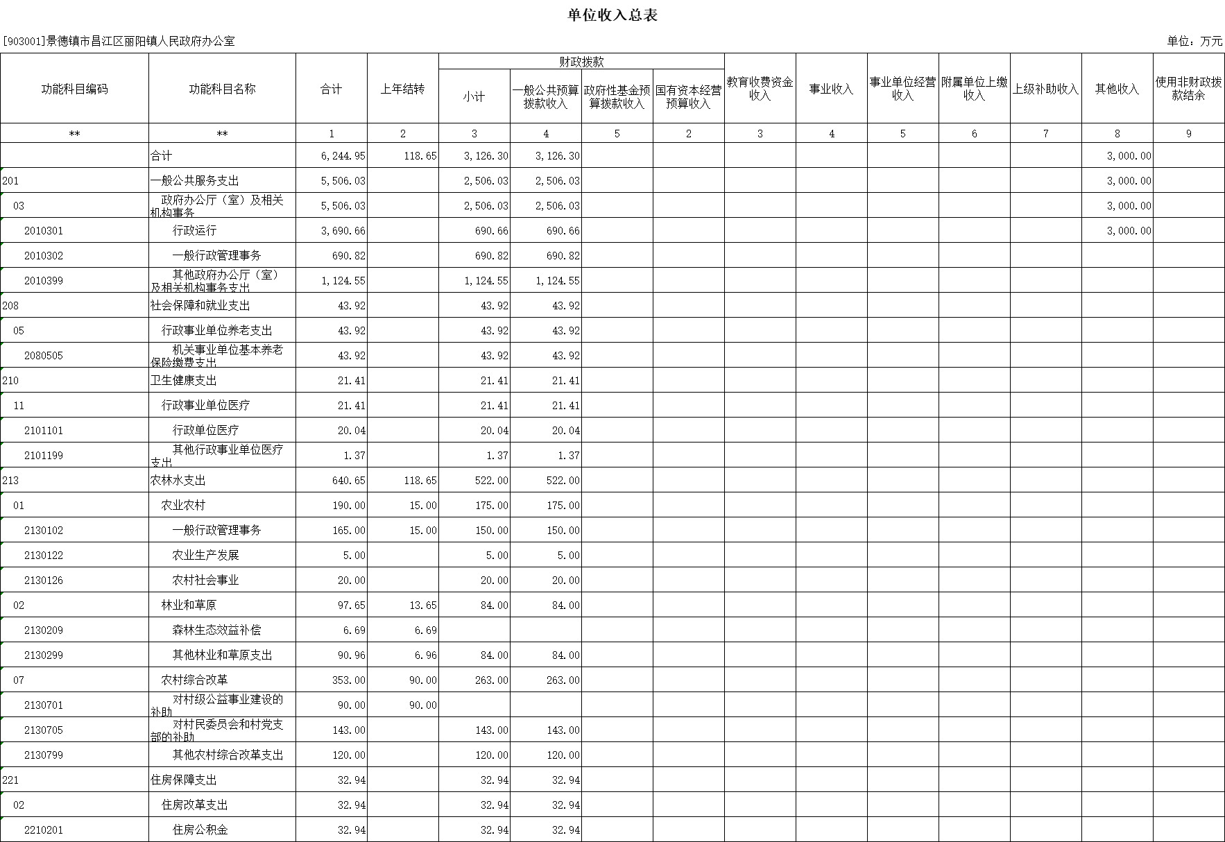 二、《部门收入总表》