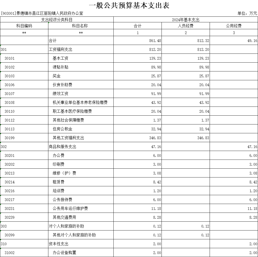 第二部分丽阳镇人民政府2024年部门预算表
