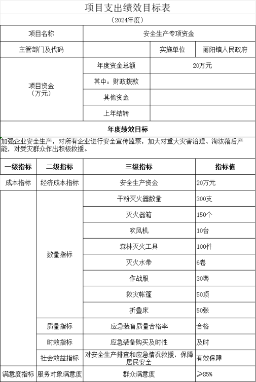 6)年度预算安排:2024年计划安排20万元用于全镇安全生产工作。