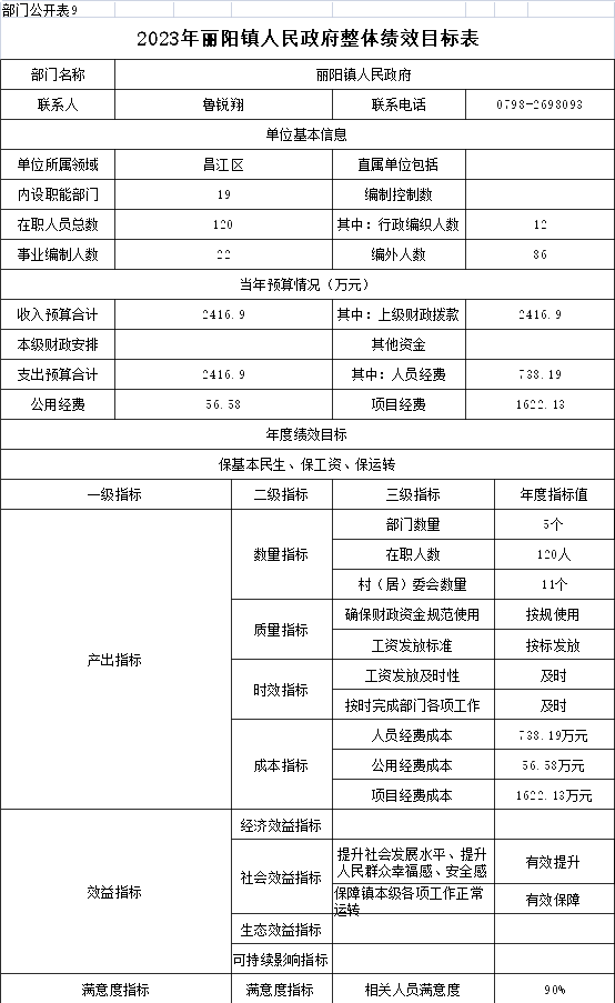 景德镇市昌江区丽阳镇人民政府2023年部门预算公开