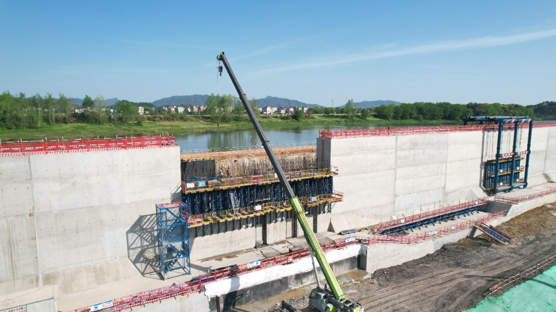 产值完成情况同样亮眼。截至目前,项目已累计完成投资15.45亿元,占总投资的41%。作为控制性工程的丽阳枢纽,备受瞩目。其正常蓄水位19.5米,船闸闸室尺度为190米×30米×5.2米 ,设计代表船型为2000吨级货船,兼顾3000吨级船型。预计到2035年,设计年单向通过能力达1516万吨,2050年将提升至2015万吨。