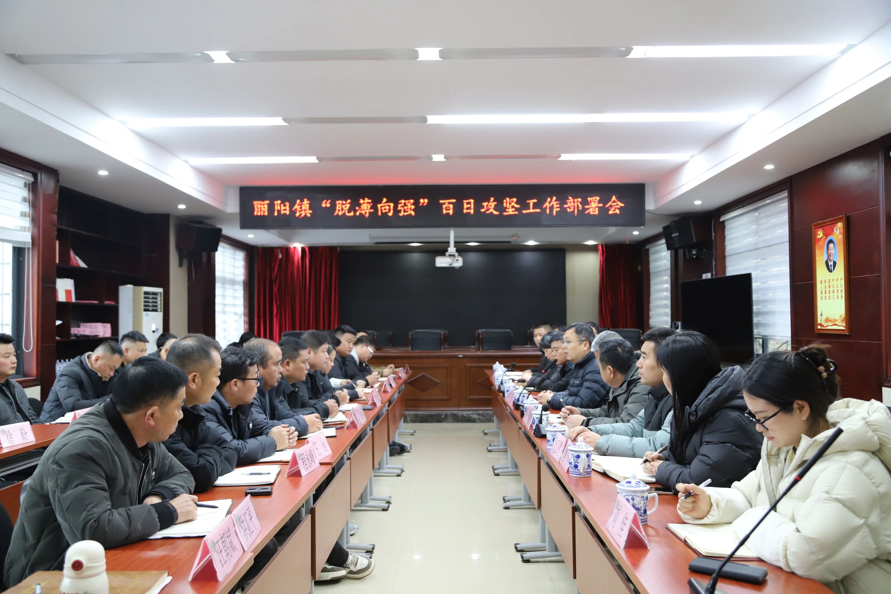 1月5日,丽阳镇召开“脱薄向强”百日攻坚工作部署会,全面总结前期工作成效,分析当前形势任务,部署下一阶段重点工作。镇党委书记甘云云主持会议并讲话。副科级以上领导干部参加会议,各村(社区)党支部书记、相关部门负责人列席会议。