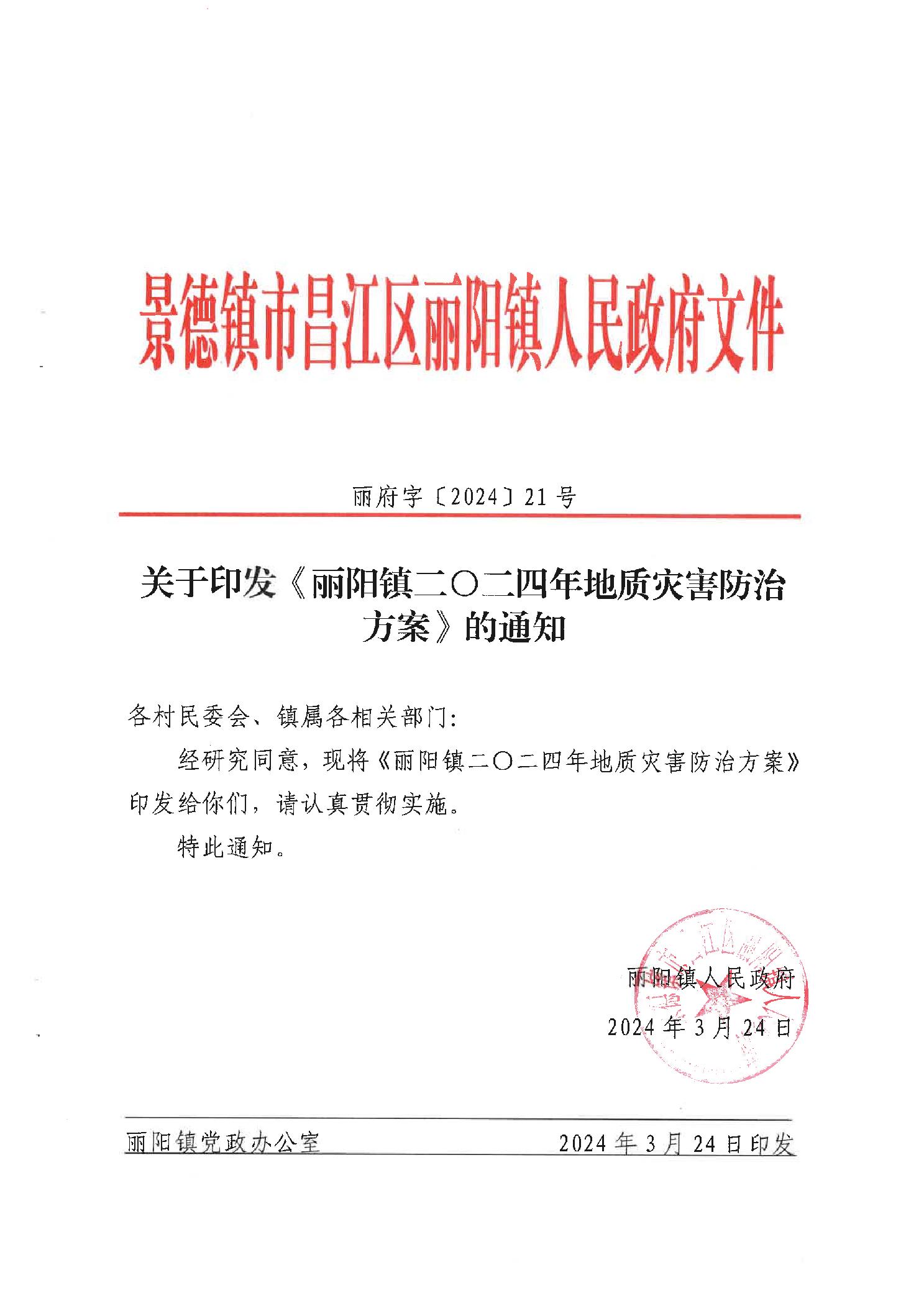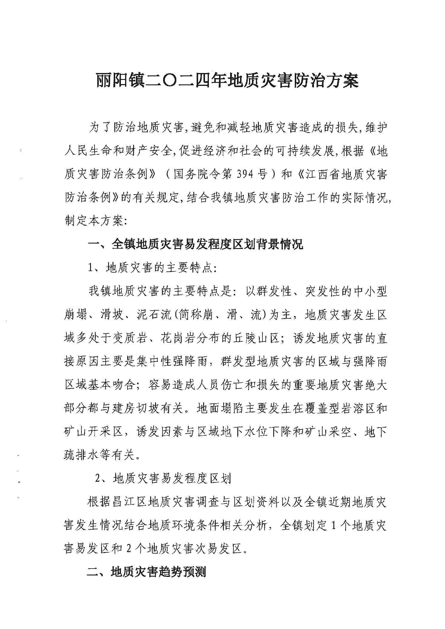 丽阳镇2024年地质灾害防治方案