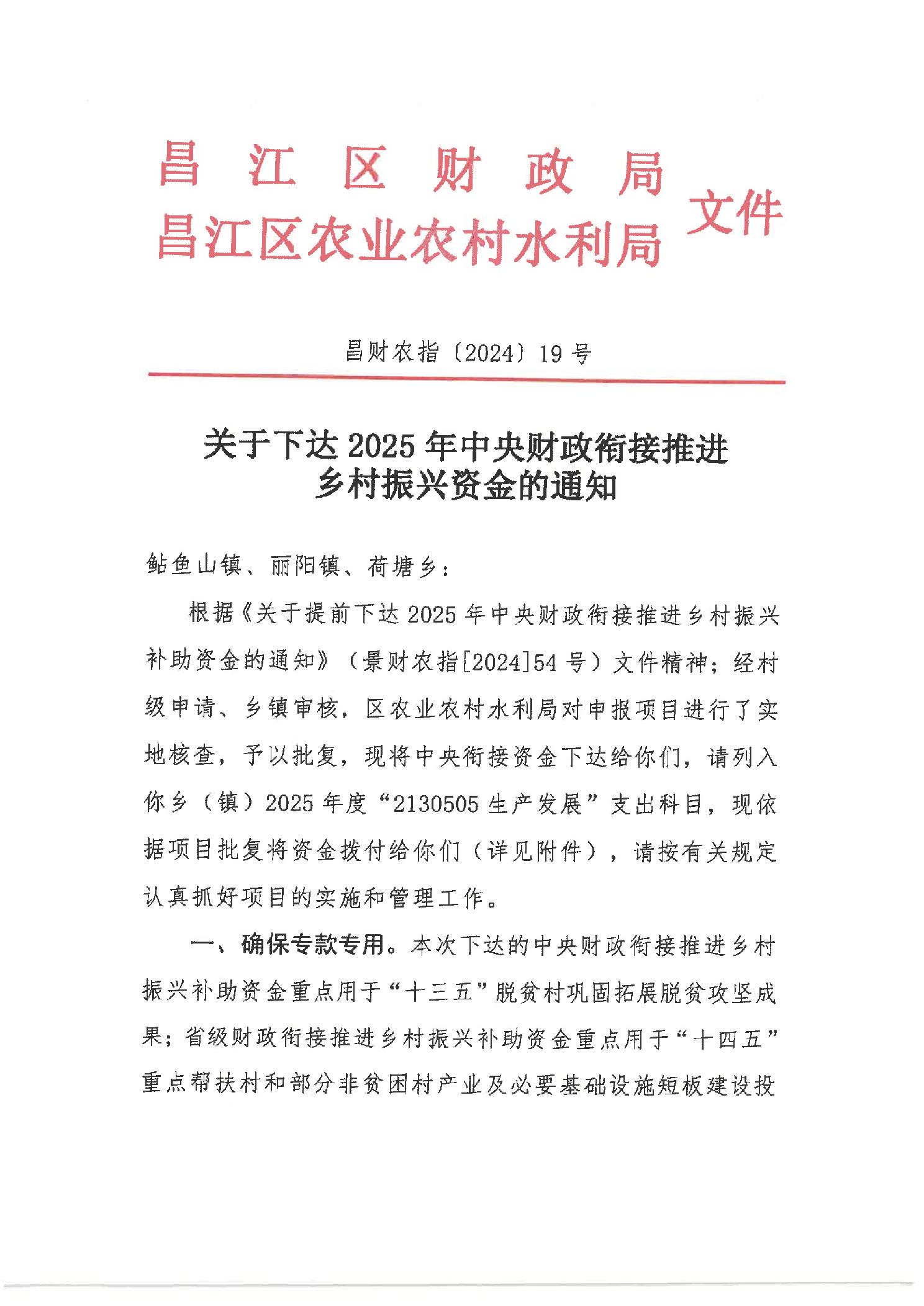 【财政直达资金】关于下达2025年中央财政衔接推进乡村振兴资金的通知