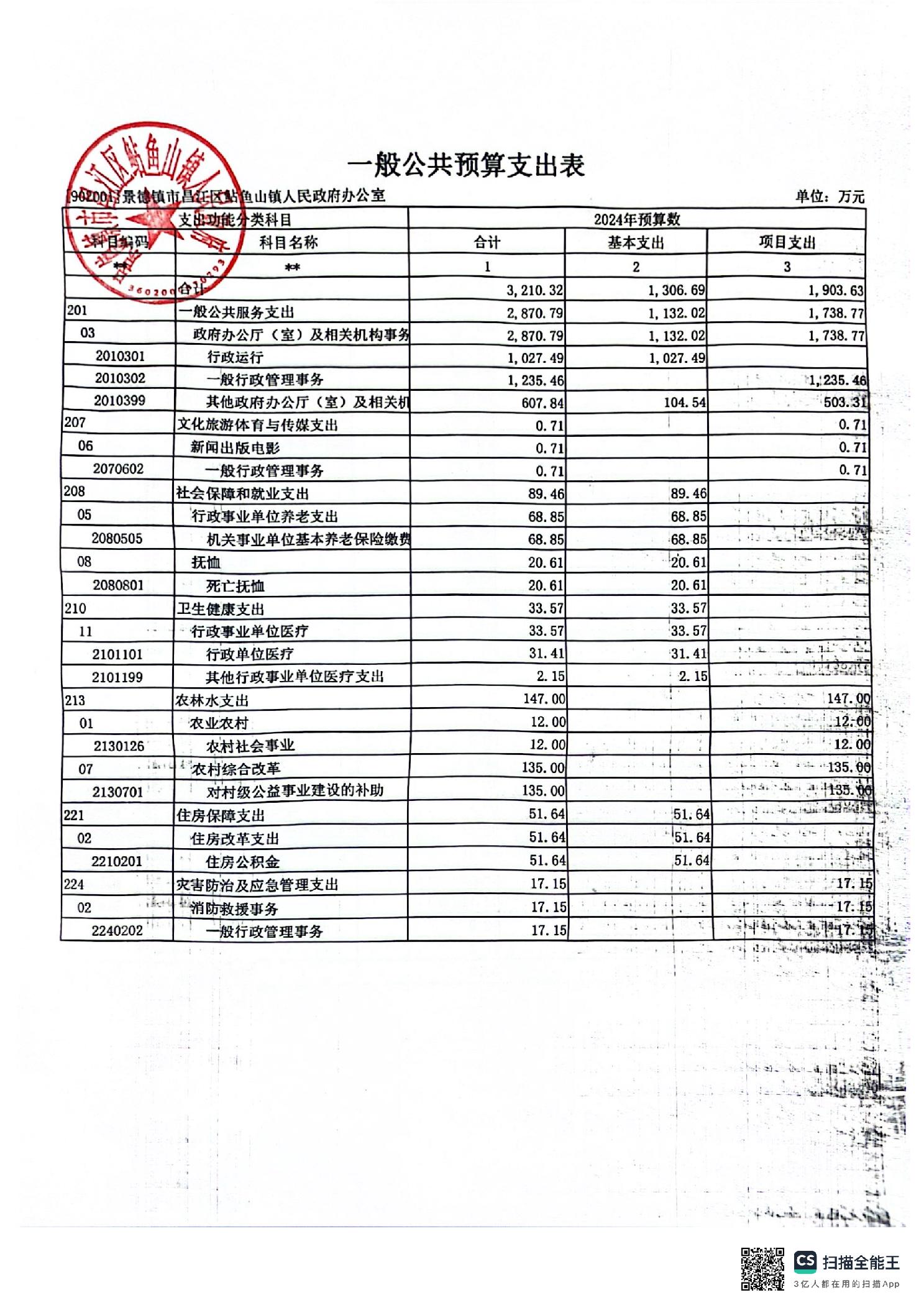 景德镇市昌江区鲇鱼山镇人民政府2024年部门预算公开