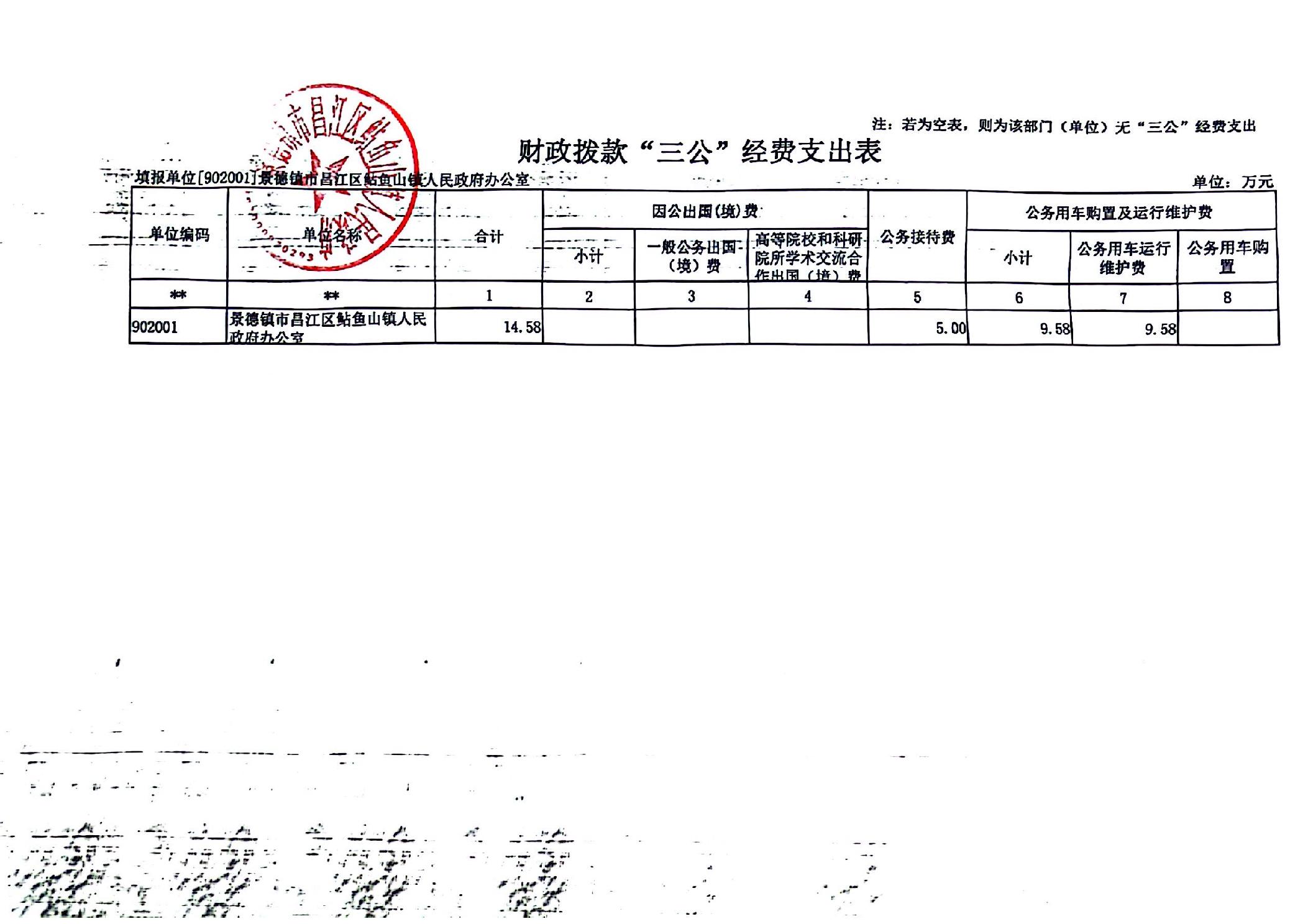昌江区鲇鱼山镇人民政府2024年一般公共预算财政拨款“三公”经费公开