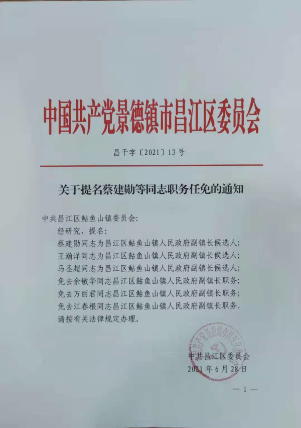 关于提名蔡建勋等同志职务任免的通知