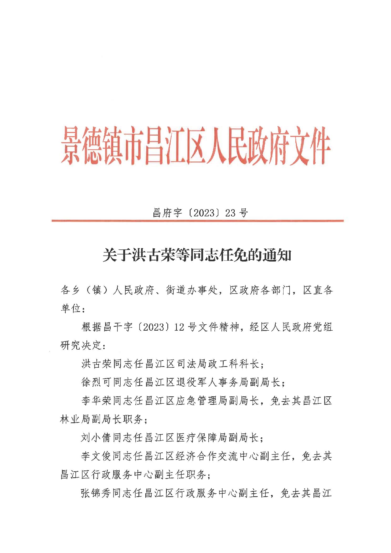 关于洪古荣等同志任免的通知