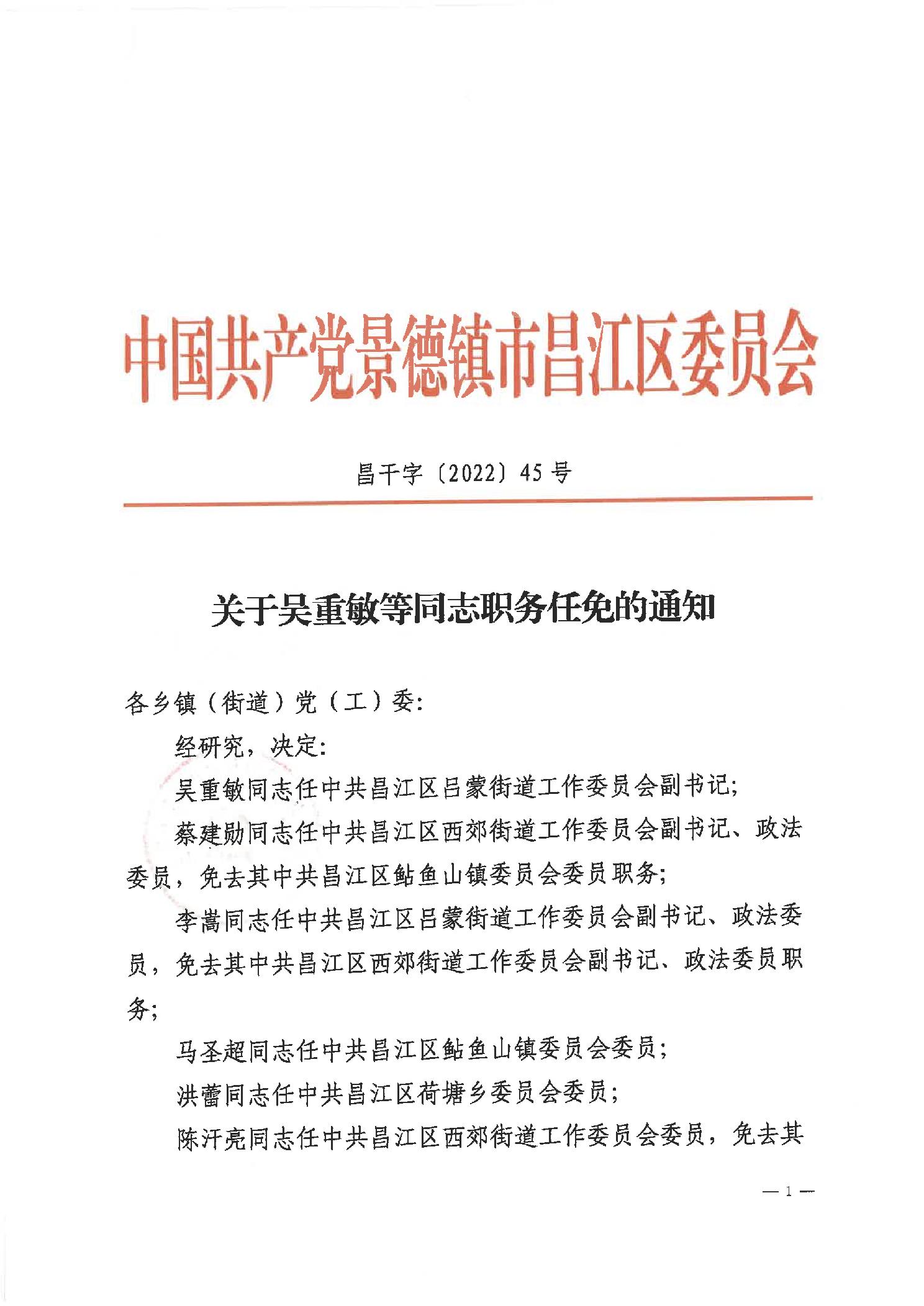 关于吴重敏等同志职务任免的通知