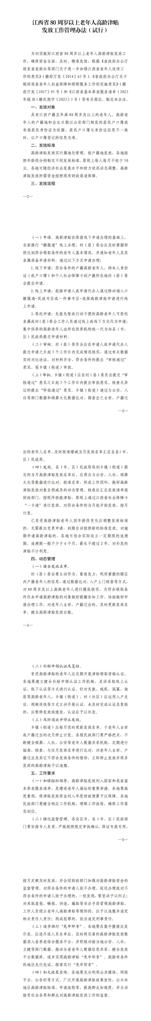 2024年11月11日,省民政厅 省财政厅联合印发《江西省80周岁以上老年人高龄津贴发放工作管理办法(试行)》,进一步规范我省80周岁以上老年人高龄津贴发放工作。现就高龄津贴发放的相关问题,做官方解读。
