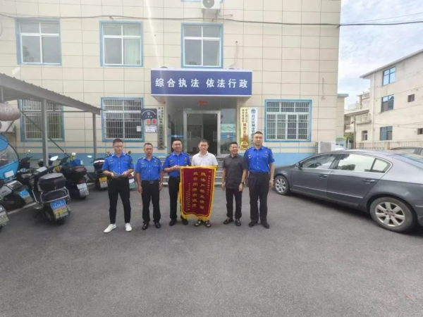 近日,昌江区鲇鱼山镇徐坊村余先生将一面印有“执法严格无情面、监管用情有温度”字样的锦旗授给昌江区城管局四中队,表达对中队执法工作人员感谢之情。