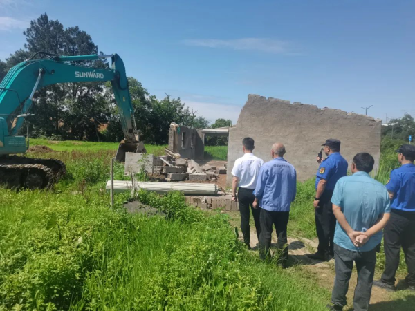行动当天,区城管局四中队联合属地村委等工作人员40余名,分成2个小组,出动2部挖机和数辆巡逻车,对2处“两违”建筑进行拆除。在拆违现场,人员按照前期分工,任务明确,警戒线拉起,现场工作人员耐心劝导,安抚违规村民,待清理现场物资后,挖机在人员的指挥下,对违建房(圈地)进行依法拆除。