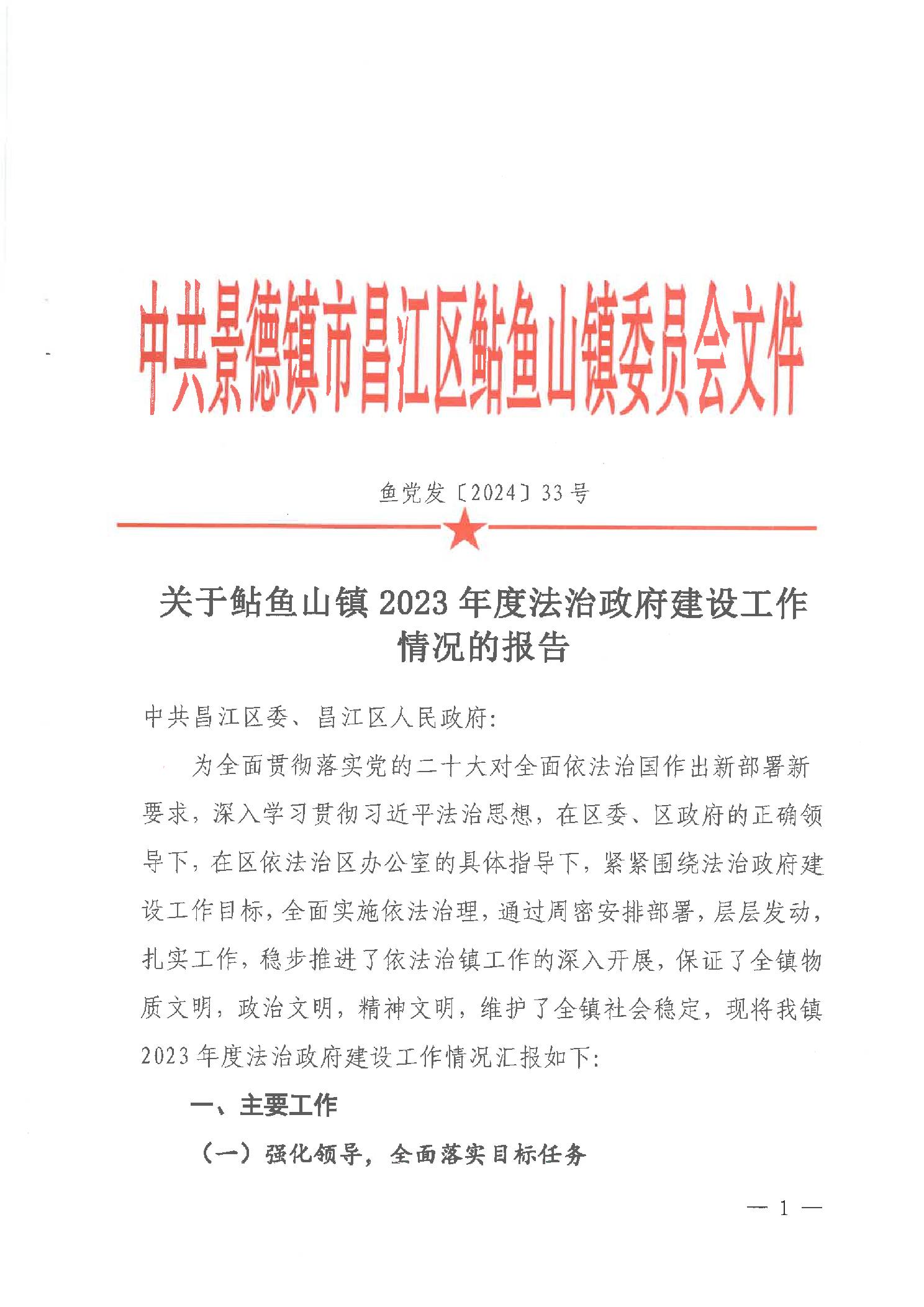 关于鲇鱼山镇2023年度法治政府建设工作情况的报告