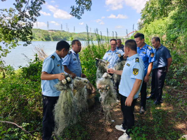 为深入贯彻落实长江流域“十年禁渔”政策,保护昌江河水域生态环境和渔业资源,2025年8月8日,区农业农村水利局、鲇鱼山镇经济发展办公室农业部门及镇综合执法队联合开展打击非法捕鱼清网专项行动,对昌江河水域内的地笼网、绝户网等违规渔具进行集中清理整治,取得显著成效。