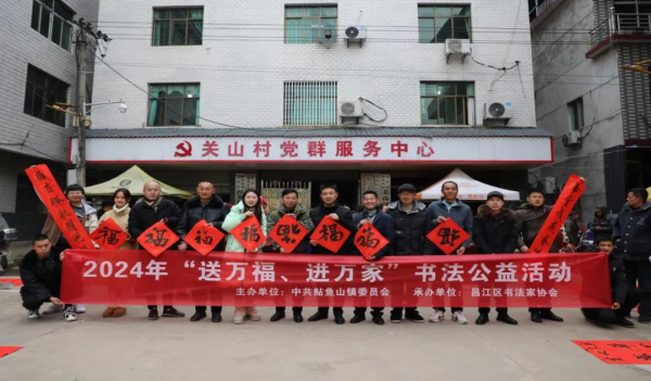 为了营造祥和喜庆的节日气氛,继承和弘扬中华传统文化,丰富村民的精神文化生活,1月26日,鲇鱼山镇党委主办,昌江区书法家协会承办的“2024年送万福、进万家”书法公益活动,在鲇鱼山镇关山村党群服务中心举行。鲇鱼山镇党委书记舒天才与市书法家协会副主席方毅,市书法家协会副主席、昌江区书法协会主席黄洪波等8名艺术家们一起为村民送出新春祝福。