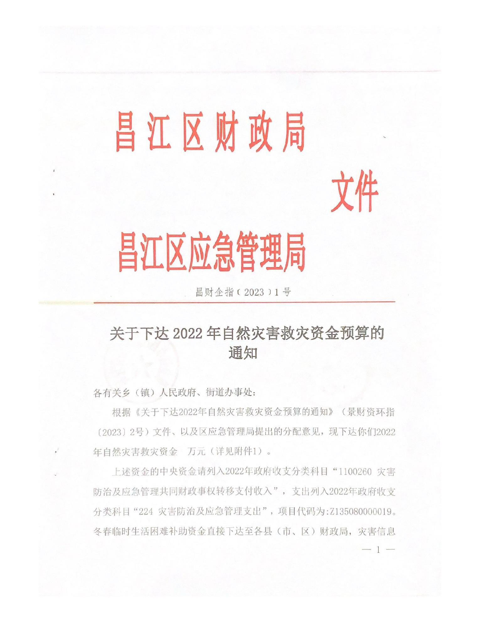 昌财企指【2023】1号 关于下达2022年自然灾害救灾资金预算的通知.pdf