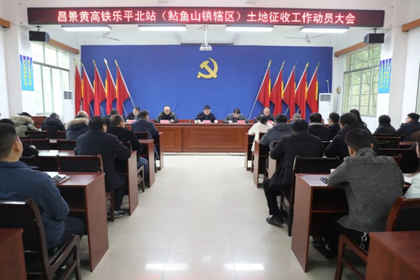 2月25日,昌景黄高铁乐平北站(鲇鱼山镇辖区)土地征收工作动员大会在鲇鱼山镇顺利召开,昌江区副区长汪维,区人大常委会委员、人大财经委主任侯志军,鲇鱼山镇党委书记舒天才,党委副书记、镇长彭清丽,副科级以上干部,新柳村委会干部及相关人员参加会议,会议由彭清丽主持。