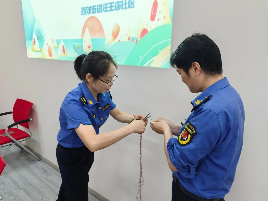 端午至,粽飘香,区城管局第一党支部与西郊街道汪王庙社区于 5 月 29 日携手开展 “端午安康,粽享欢乐” 主题包粽子活动。这场融合传统民俗、党群互动与文明宣传的活动,在粽叶翻飞间勾勒出温暖的社区图景。
