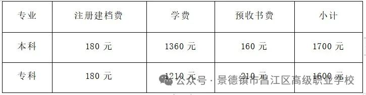 按照《江西省教育厅江西省财政厅江西省物价局关于江西电大开放教育本科试点收费标准的批复》(赣教计字〔2000〕274 号)和《江西省发展计划委员会关于同意调整江西电大开放教育专科收费标准的批复》(赣计收费字〔2002〕694 号)执行。本科学费:80元/学分,专科学费:55元/学分。报名时按180元/生标准一次性收取注册建档费。教材费据实另收。