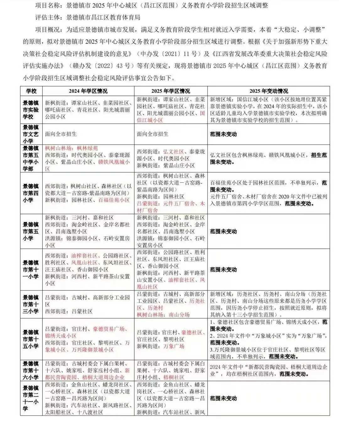 景德镇市2025年中心城区(昌江区范围)义务教育小学阶段招生区域调整