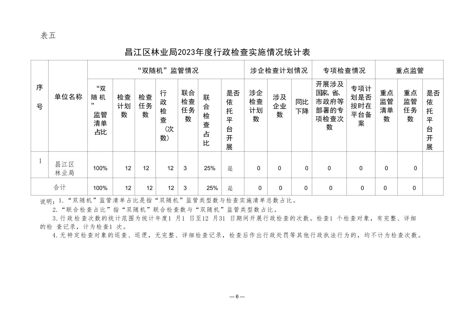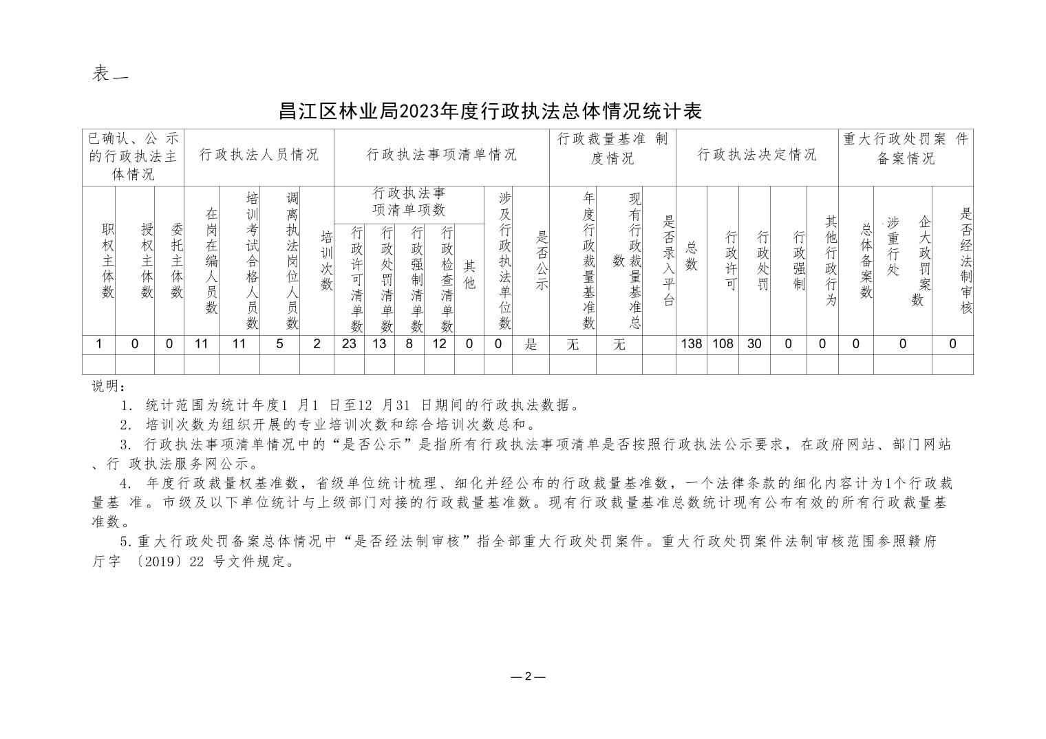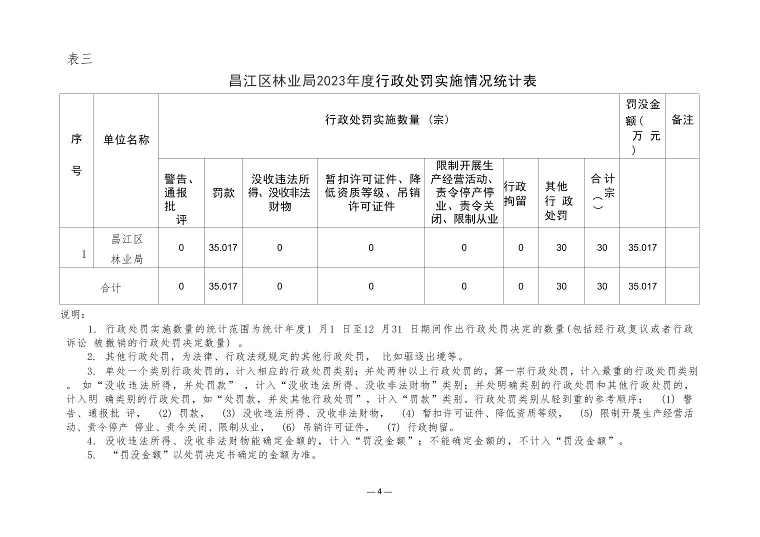 昌江区林业局2023年度行政执法数据