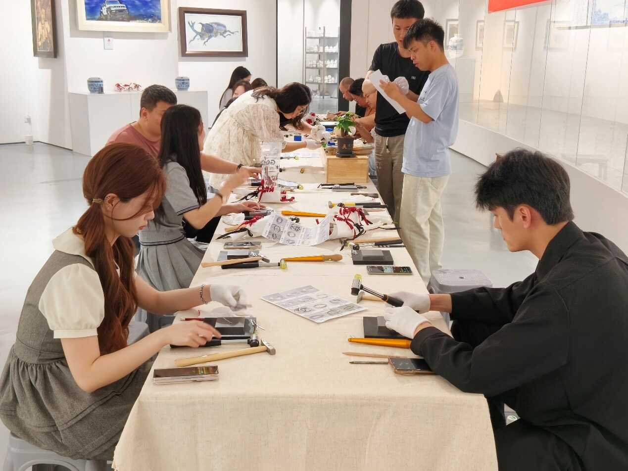 在银饰制作环节,工艺师详细讲解了银戒指制作的基本步骤,青年们认真学习,两两配合,共同投入到银戒指制作中。从创意设计到成品完成,大家分工协作,在敲打银条的清脆声响中培养了默契。