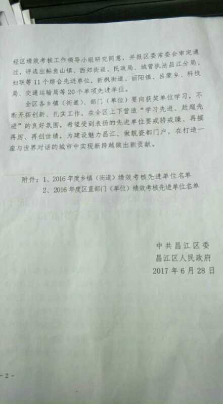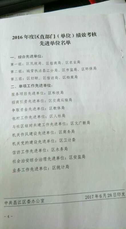 2016年昌江区民政局荣获综合先进单位