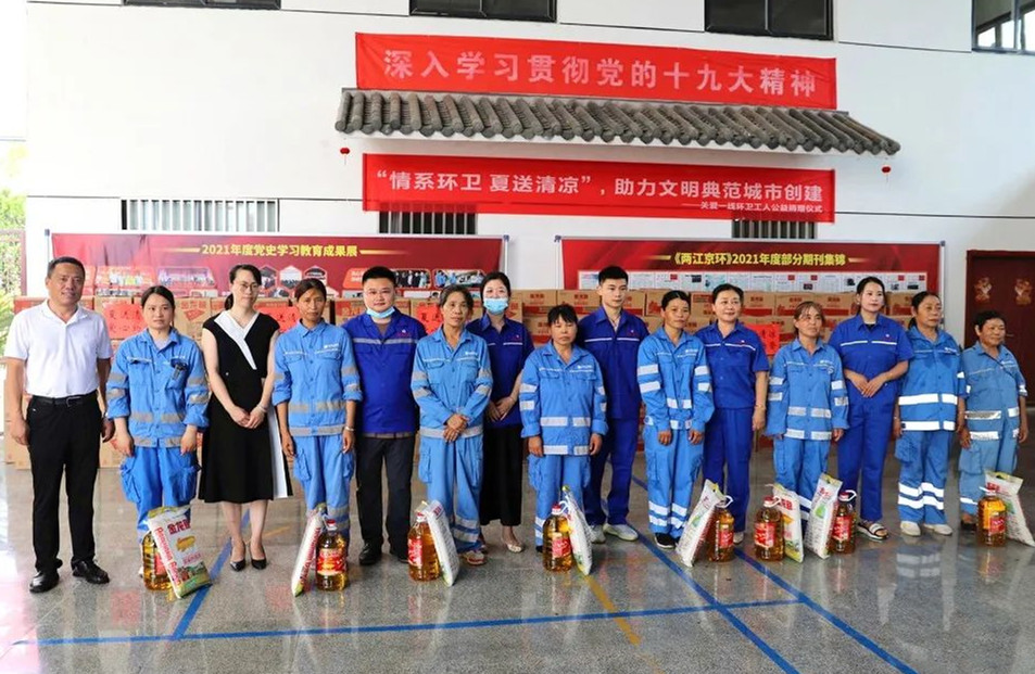 当日上午,昌江区红十字会在景德镇京环环境服务有限公司举行“情系环卫 夏送清凉”公益捐赠活动。昌江区人民政府副区长、区红十字会会长张碧珍,景德镇昌达混凝土有限公司董事长夫人吴春莲,景德镇京环环境服务有限公司总经理李春国参加活动。