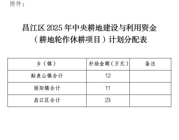 昌江区2025年中央耕地建设与利用资金计划分配表