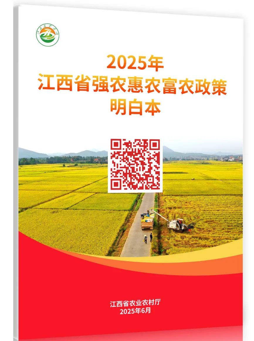 为全面推进强农惠农富农政策公开公示,提高政策知晓度和透明度,有效保障农民群众知情权和监督权,省农业农村厅组织编写了《2025年江西省强农惠农富农政策明白本》(以下简称《明白本》),汇总梳理了补贴类项目、新型农业经营主体及体系、产业发展项目、农业绿色发展项目、乡村建设行动项目、农业支持保护政策、财政衔接推进乡村振兴补助资金等7部分共41项惠农资金政策。《明白本》逐一列明政策依据、支持对象、支持内容、实施标准等信息,供广大农民群众、涉农经营主体,以及社会各界学习了解。同时,希望各市、县(区)农业农村部门和乡镇等单位认真组织学习,更好贯彻落实强农惠农富农政策,充分发挥财政资金政策的引领带动作用,为加快推进乡村全面振兴、建设农业强省提供有力支撑。