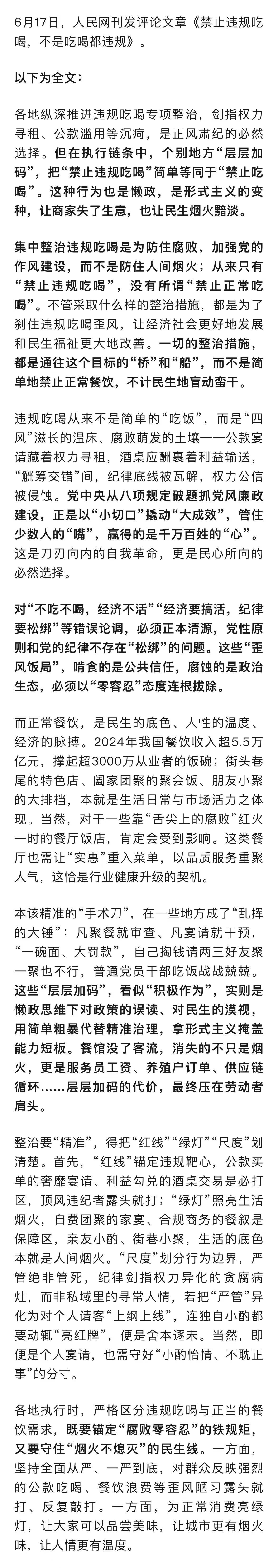 人民网评:禁止违规吃喝,不是吃喝都违规