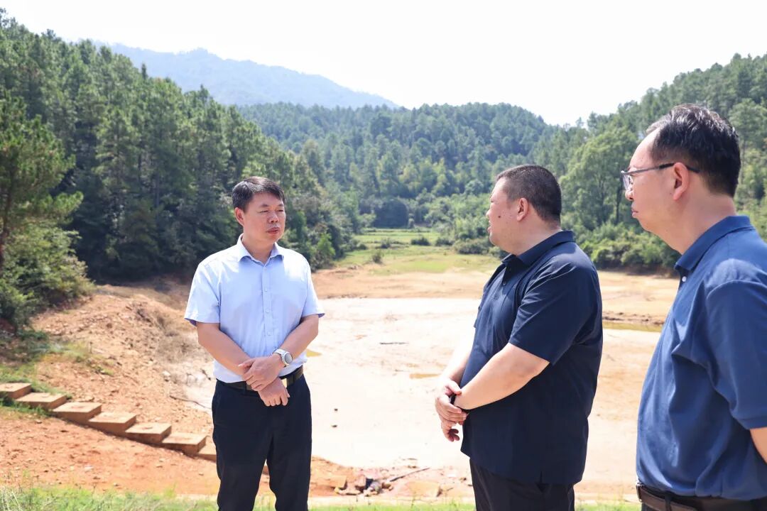 许盛丰一行直奔基层一线,首先来到昌江区油麻坞水库,仔细查看水库当前蓄水水位,详细询问水库集雨面积、总库容、有效灌溉面积等基础信息。许盛丰与管理人员面对面交流,了解近期水库蓄水量变化、日常放水调度流程以及下游农田灌溉保障情况,认真听取水库后续蓄水保水计划和应急供水预案。随后,调研组前往鲇鱼山镇,实地考察当地引提水灌溉工程设施运行情况。许盛丰现场查看设备运转状态,向工作人员了解提水能力、灌溉覆盖范围以及应对持续干旱的应急保障措施,对昌江区在引提水设施维护和灌溉调度方面的工作给予了肯定。
