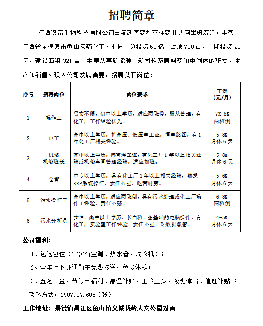 招聘要求:18-45周岁,身体健康,无不良嗜好,遵守厂规厂纪