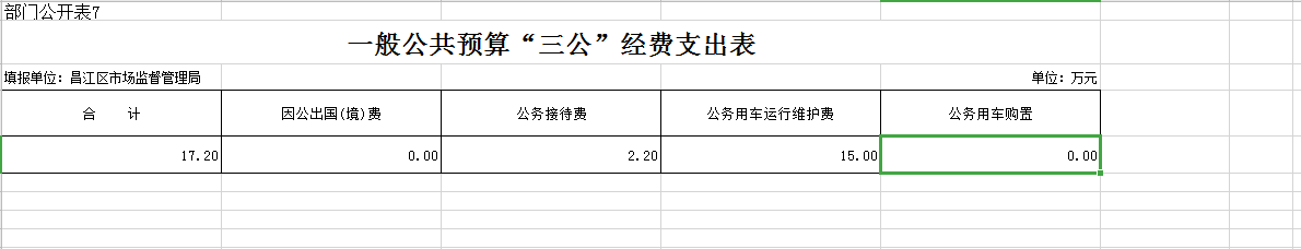 昌江区市场监管局2019年一般公共预算“三公”经费支出表