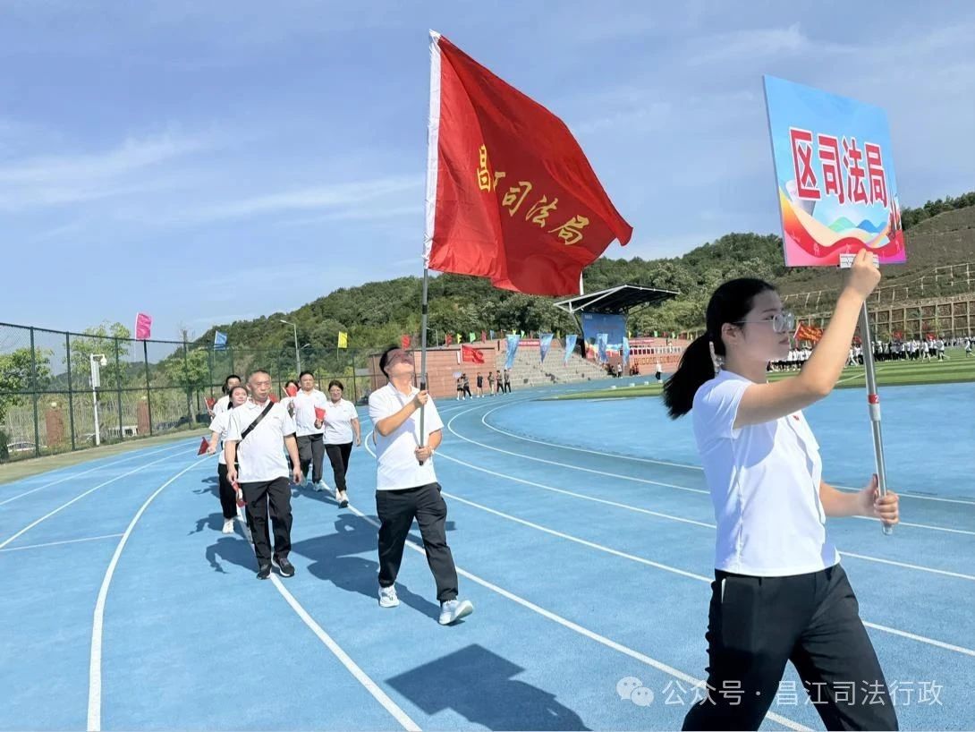“现在走来的是昌江区司法局代表队!他们步伐坚定,正气凛然,既是法律的捍卫者,也是赛场的拼搏者。‘法治引领,劲展风采’是他们的口号,更是他们的信念。他们将以严谨的态度、昂扬的斗志,在赛场上展现风采。”伴随着主持人的介绍,区司法局16余名干警身着统一队服,精神抖擞,在高昂奋进的乐曲声中,步履铿锵、意气风发地走过主席台,接受检阅,展现了新时代司法行政队伍昂扬向上、开拓进取的精神风貌。
