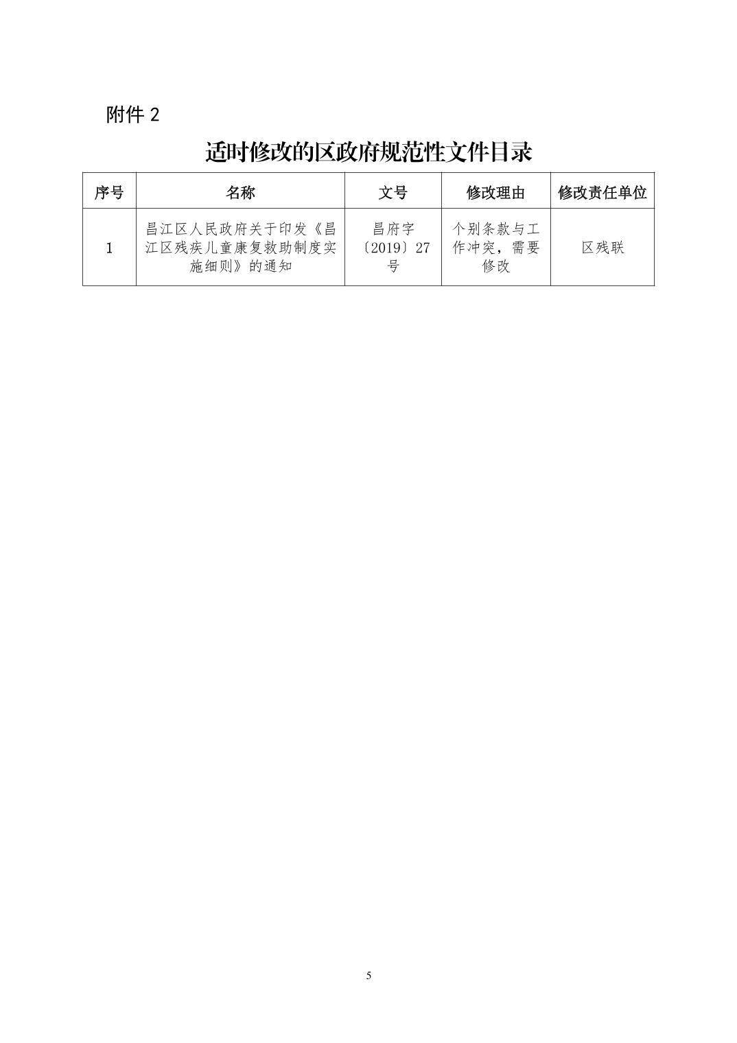 二、适时修改《昌江区人民政府关于印发《昌江区残疾儿童康复救助制度实施细则》的通知 》等1件规范性文件(附件2)。