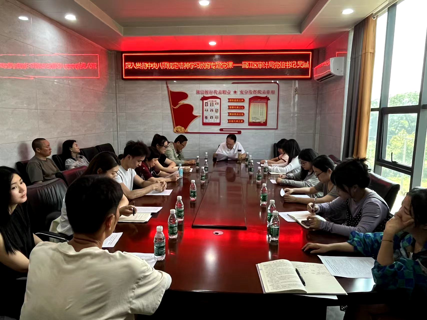 为持之以恒推进作风建设,巩固拓展落实中央八项规定精神成果,6月13日,区审计局党组书记以“深入贯彻中央八项规定精神,筑牢廉洁自律思想防线”为主题,为区审计局党员干部讲授专题党课,推动中央八项规定精神入脑入心、见行见效。