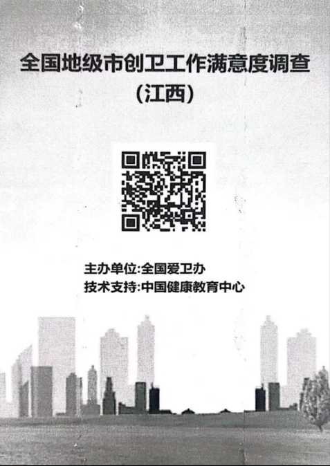 调查对象:我区各年龄段、各行各业的党员、干部、群众,通过微信二维码,积极参与问卷调查,科学评价我市国家卫生城市创建工作。