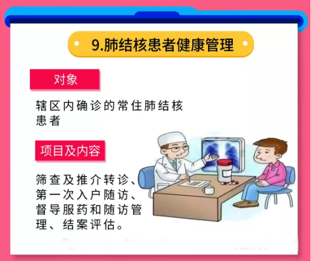 对辖区疑似肺结核患者进行结核病筛查、推介转诊,为辖区确诊常住肺结核患者在治疗期间提供随访评估(首次入户)、服药督导、定期随访、健康指导等服务。