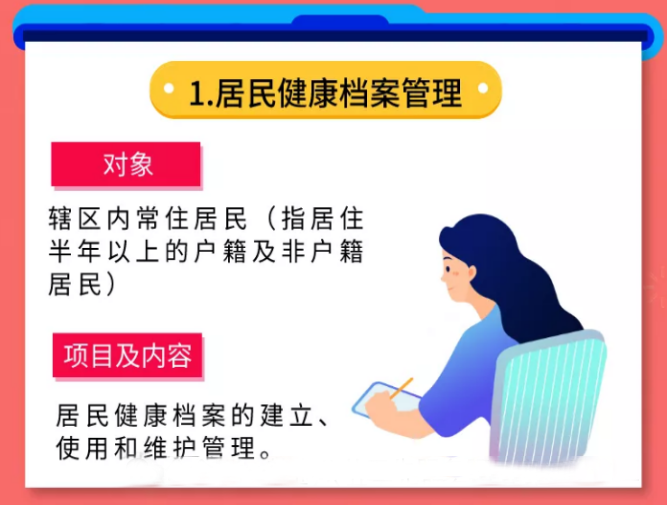 辖区内常住居民(指居住半年以上的户籍及非户籍居民),以0~6岁儿童、孕产妇、老年人、慢性病患者、严重精神障碍患者和肺结核患者等人群为重点。为您建立健康档案,记录个人基本信息、健康体检以及重点人群健康管理记录和其他医疗卫生服务记录。