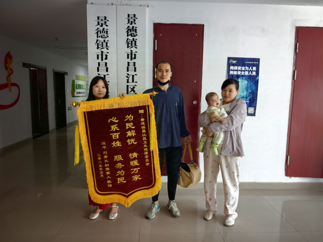 因刘某家庭仅靠丈夫送外卖维生,无力承担省二附院的住院费用,昌江区卫健委积极协调解决医疗支出,切实帮助其渡过难关。这面锦旗不仅是群众的感恩印证,更激励昌江卫健系统始终秉持 “人民至上、生命至上” 理念,持续完善困难群众医疗保障机制,以更精准的服务举措兜牢民生底线,用实际行动践行 “解民忧、暖民心” 的责任担当。